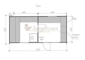 Баня «Викинг» из кедра 5х2,2 м с боковым входом