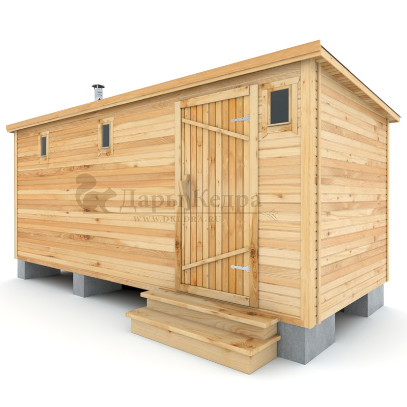 Баня-бочка квадро из кедра с козырьком (все размеры) Это прямоугольное изделие с закругленными углами. За счет такой конструкции во время топки воздух циркулирует по кругу, поэтому баня-бочка нагревается не более 30 минут. Козырек не только украшает баню, но и защищает оставленную обувь от дождя. Лавочки из кедра находятся по всей длине бани-бочки с обеих сторон. Печь расположена в парилке около дальней стены. В зависимости от выбранного размера баня-бочка квадро с козырьком имеет следующую комплектацию: Баня-бочка квадро 2,5 метра - парилка; Баня-бочка квадро 3,5 и 4,5 метра - раздевалка, парилка; Баня-бочка квадро 5,5 метров - раздевалка, парилка, моечная. По вашему желанию ее можно укомплектовать печью с внешней загрузкой, благодаря которой весь мусор вовремя топки остается на улице. Баня-бочка квадро не требует полноценный фундамент, поэтому при необходимости ее можно перенести в другое место. Обращаем Ваше внимание, что в стандартную комплектацию бани входят лавки в парной с обеих сторон. Дополнительно можно заказать полок открытого или закрытого типа! Кедр обладает ароматическими свойствами. Он не деформируется и влагоустойчив, при правильном уходе за деревом на нем не развиваются грибки и плесень. Обращаем Ваше внимание, что данную модель бани-бочки можно изготовить с ровным полом. Эта дополнительная опция и оплачивается отдельно!