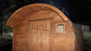 Баня-бочка буханка из кедра с козырьком (все размеры)