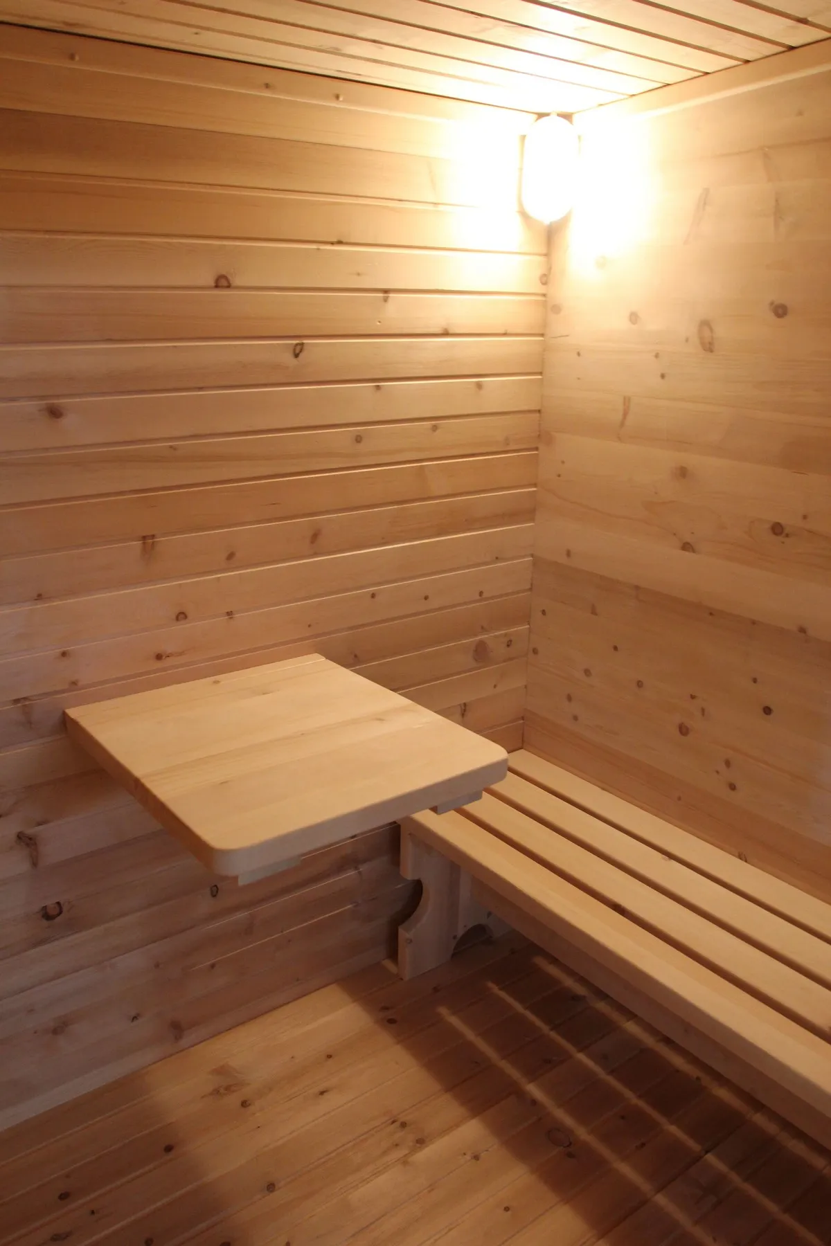 Столик в раздевалке будет удобен при длительном пребывании в бане.