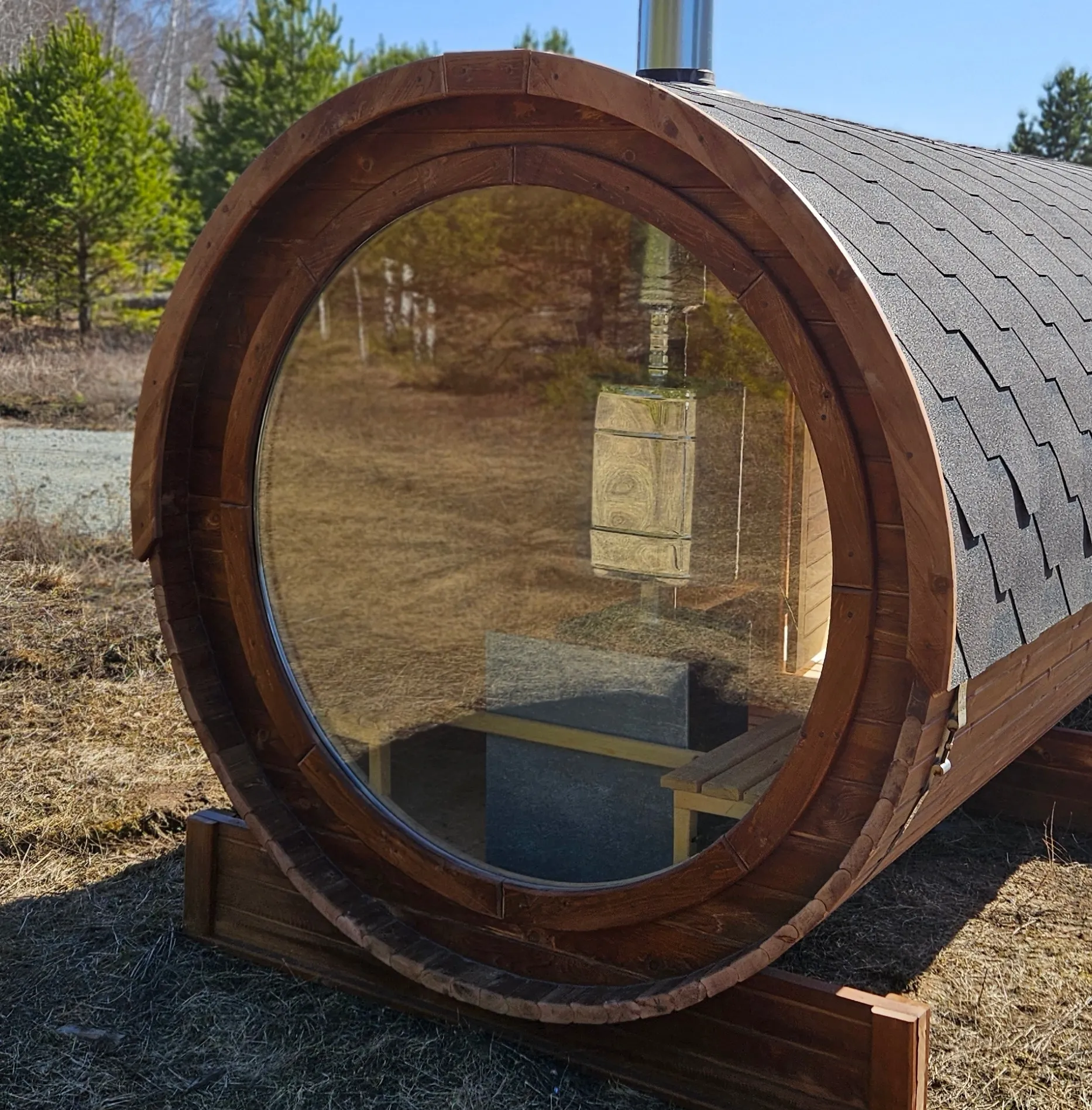 Баня-бочка круглая из кедра с боковым входом (все размеры)
