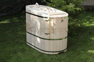 Давно хотел себе фитобочку домой, помониторил в интернете, остановился на Дарах Кедра. Посоветовали полулежачую модель, не стал долго раздумывать и купил. Действительно удобная, вместительная, парюсь и доволен, нареканий нет.
