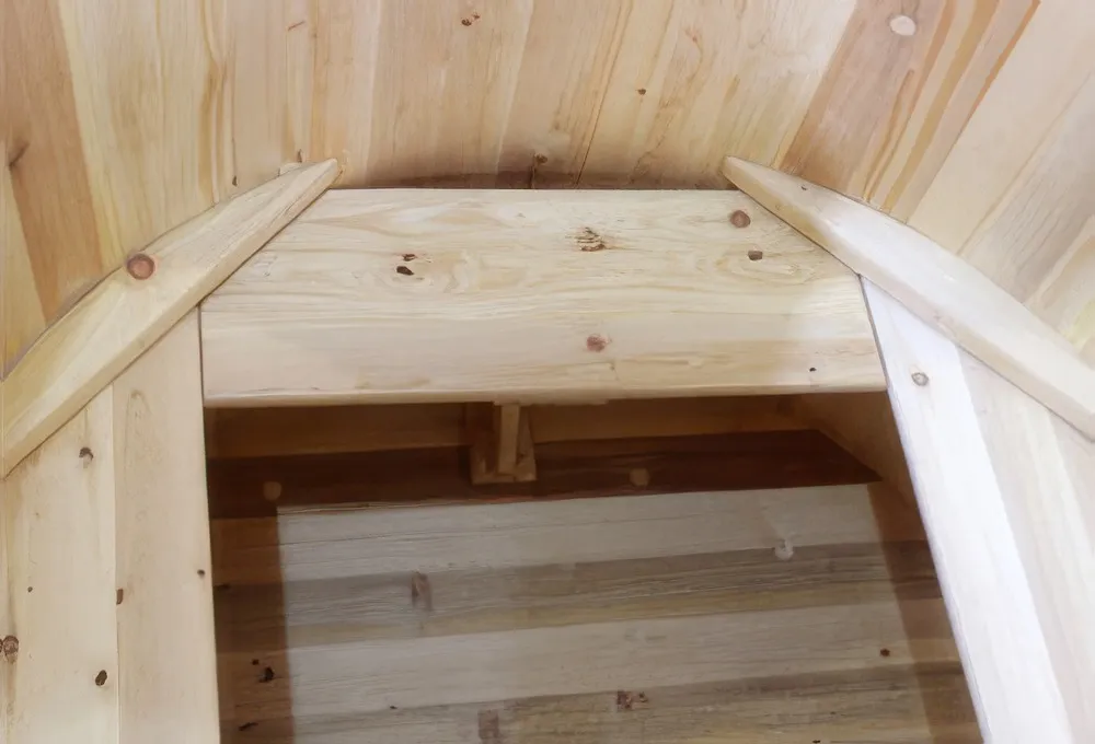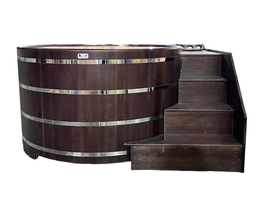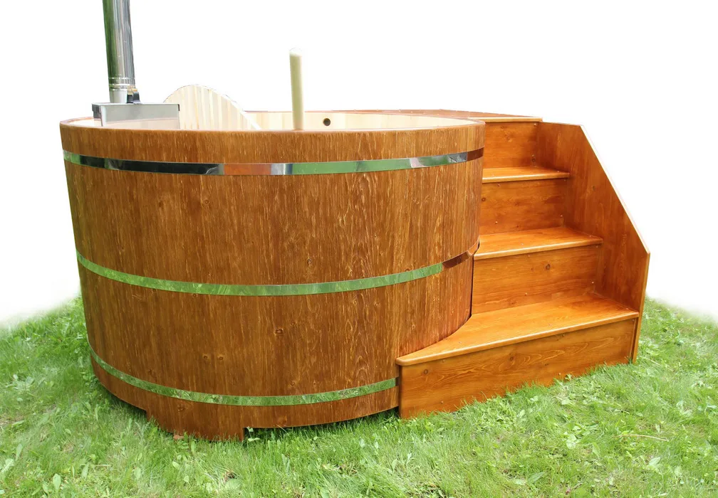 Это уличная баня, которой можно пользоваться круглый год. Купель представляет собой круглую емкость для воды, внутри которой располагаются сиденья из кедра. Нагрев воды происходит за счет встроенной печи, которая находится внутри купели за перегородкой. Рекомендуем приобрести термокрышку и весло для перемешивания воды для ускорения нагрева. Для удобства пользования японская баня фурако оборудована внешней и внутренней лестницей из кедра. В комплектацию этой модели входит совок с длинной ручкой, который позволяет извлекать угли и золу после эксплуатации изделия.