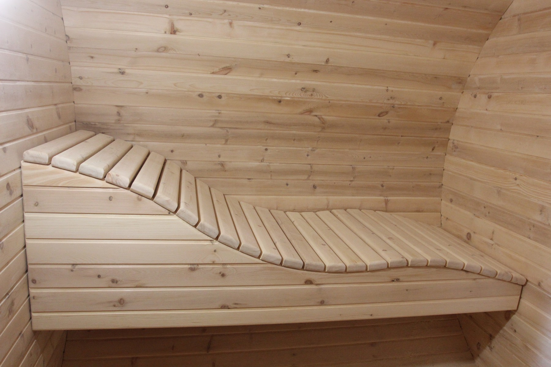 Стильная и современная баня-бочка может быть выполнена длиною от 3 метров, что-бы парильное отделение было не менее 2,5 метров для безопасного расстояния человека от печи. Полок одноуровневый, что позволяет в полной мере наслаждаться видом из панорамного окна. Печь идёт с внутренней топкой по центру, её можно установить сбоку с топкой внутри, снаружи, либо вынести топку в соседнее отделение. Печь можно укомплектовать баком для воды, а саму баню сделать длиною до 6 метров, комфортно разместив в ней дополнительно помывочную и комнату отдыха.