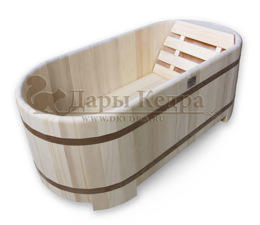 • Деревянная ванна из кедра Деревянная ванна из кедра создаст уютную атмосферу в вашей ванной комнате, бане или спа-салоне. При взаимодействии кедра с водой активируются эфирные масла и фитонциды, что делает принятие ванны не только приятным, но и полезным. Ванна оснащена подспинником, поэтому во время процедур можно принять удобное положение. При правильном уходе срок службы изделия более 20 лет.