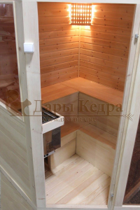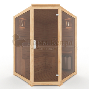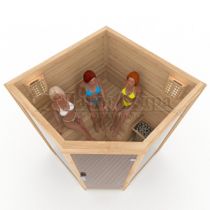 Трехместная угловая финская сауна кабина из кедра с электрокаменкой
